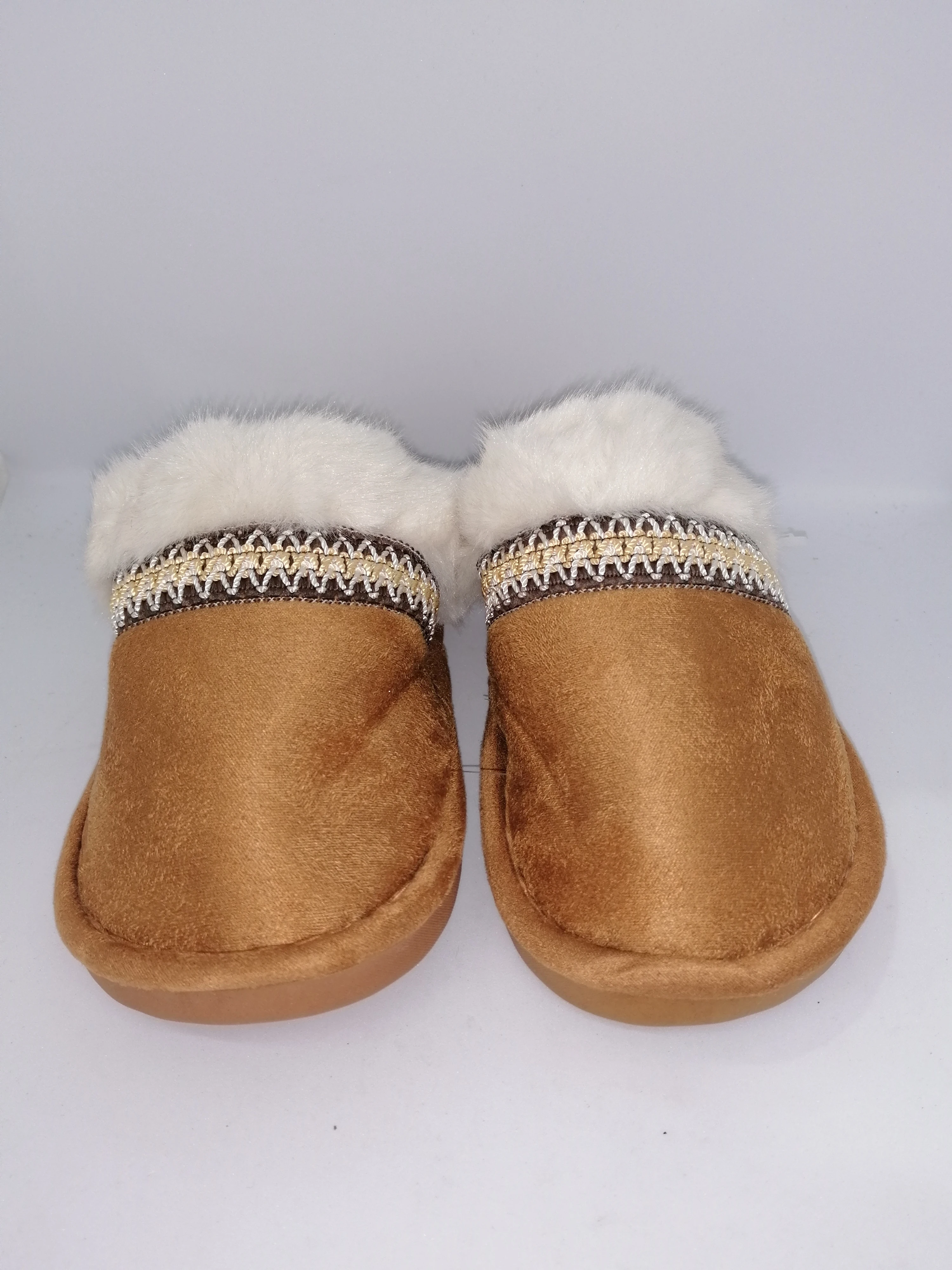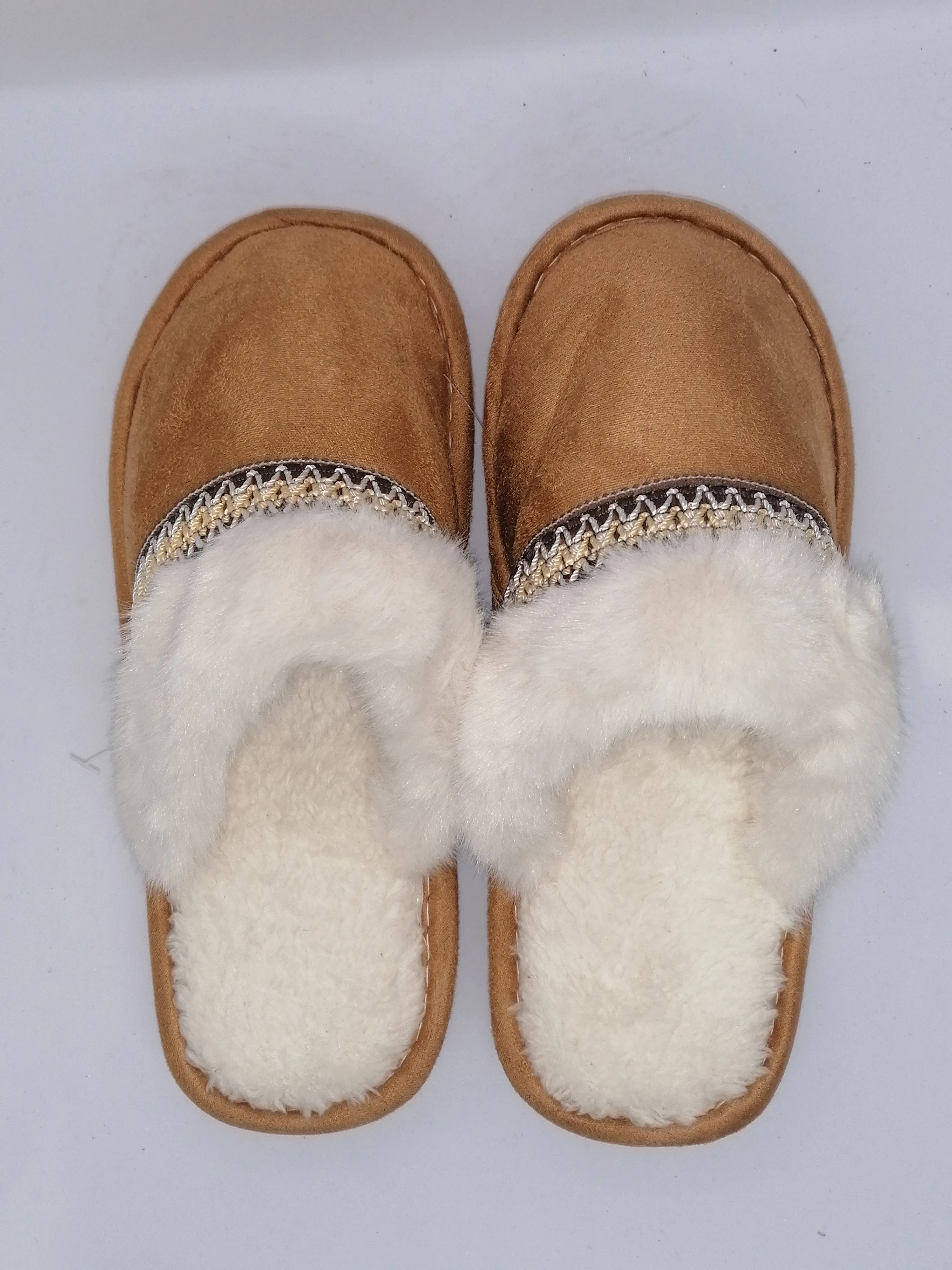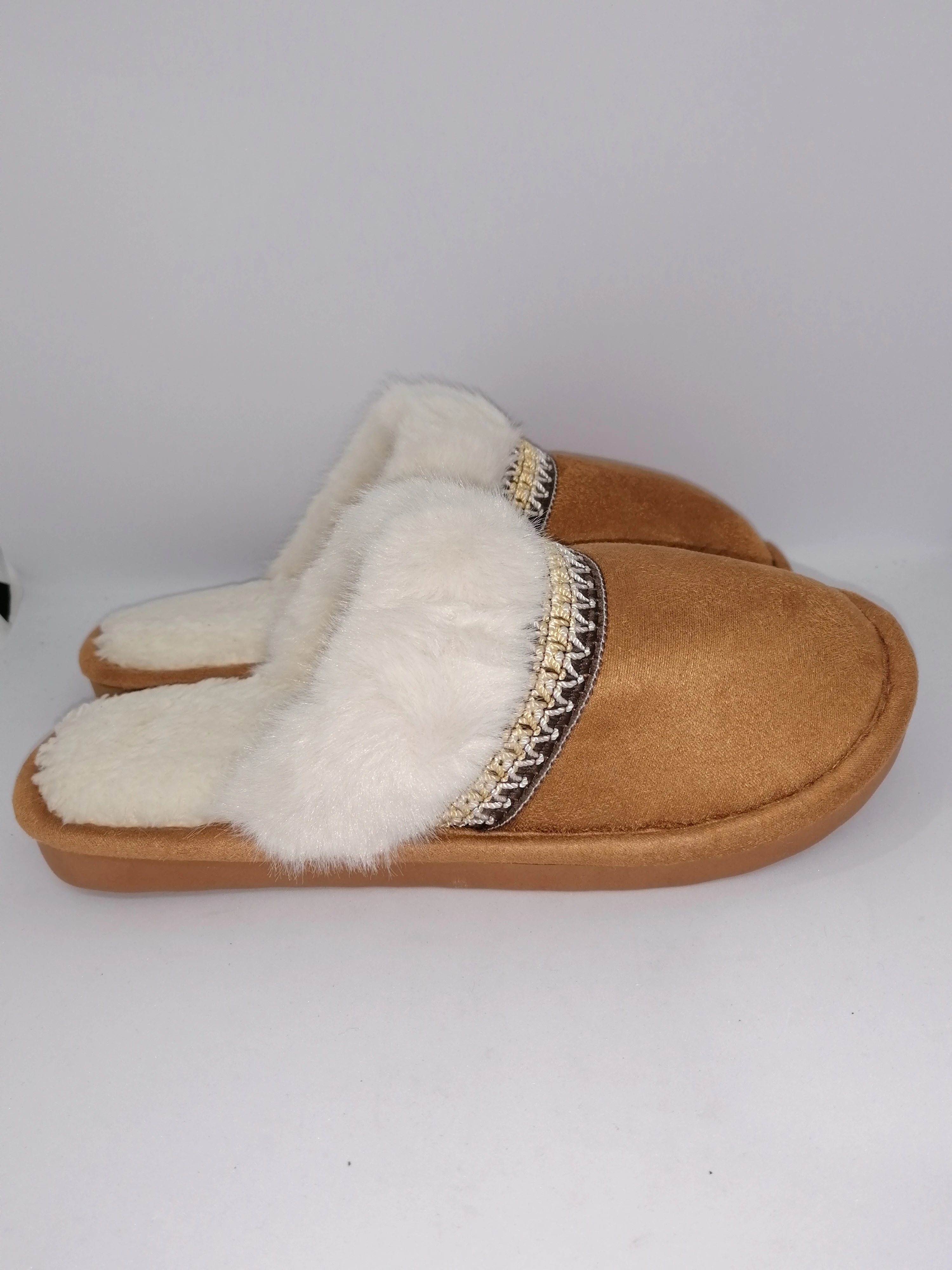 Дамските домашни чехли с плюш в кафяво с шевица са перфектното допълнение към вашия уютен домашен аутфит. Изработени от висококачествени материали, тези чехли са меки, удобни и топли, предлагайки ви комфорт през целия ден. С тях ще се чувствате като в облак и няма да искате да ги сваляте. Стилният дизайн с кафява плюшена материя и шевица придава на чехлите елегантност и изисканост. Таблица с размери