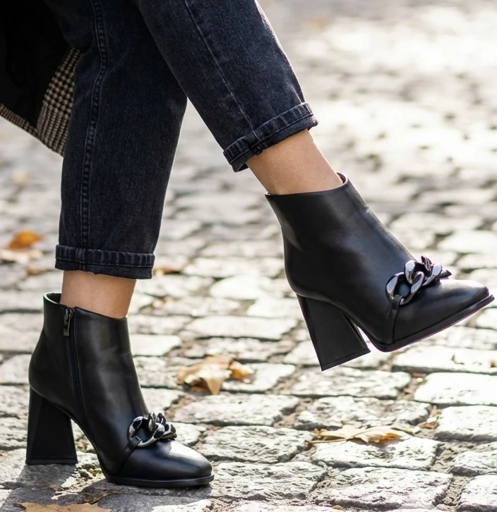 Боти Eliza J195-K645 с цип, триъгълен ток и оксидирана тока
