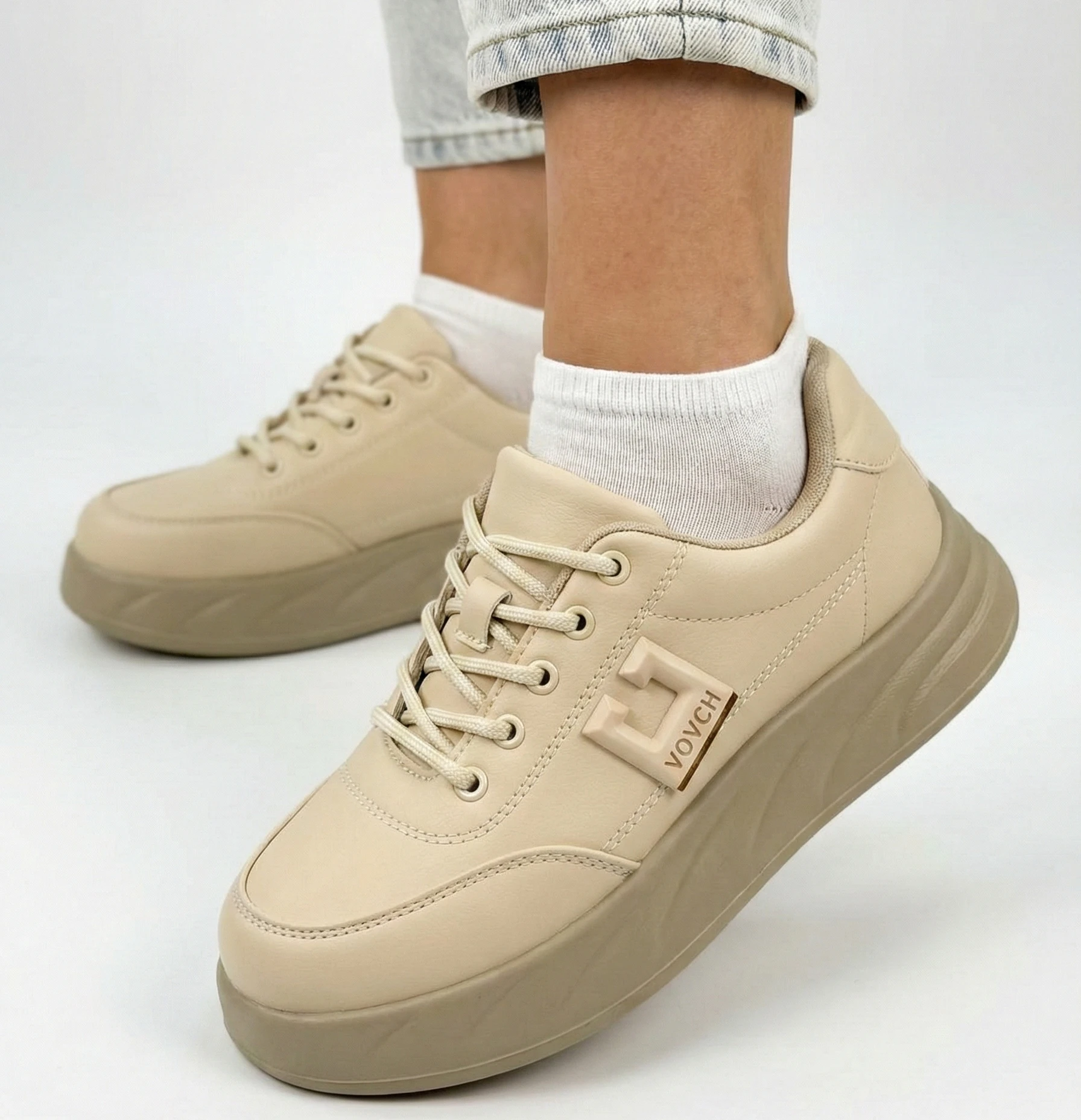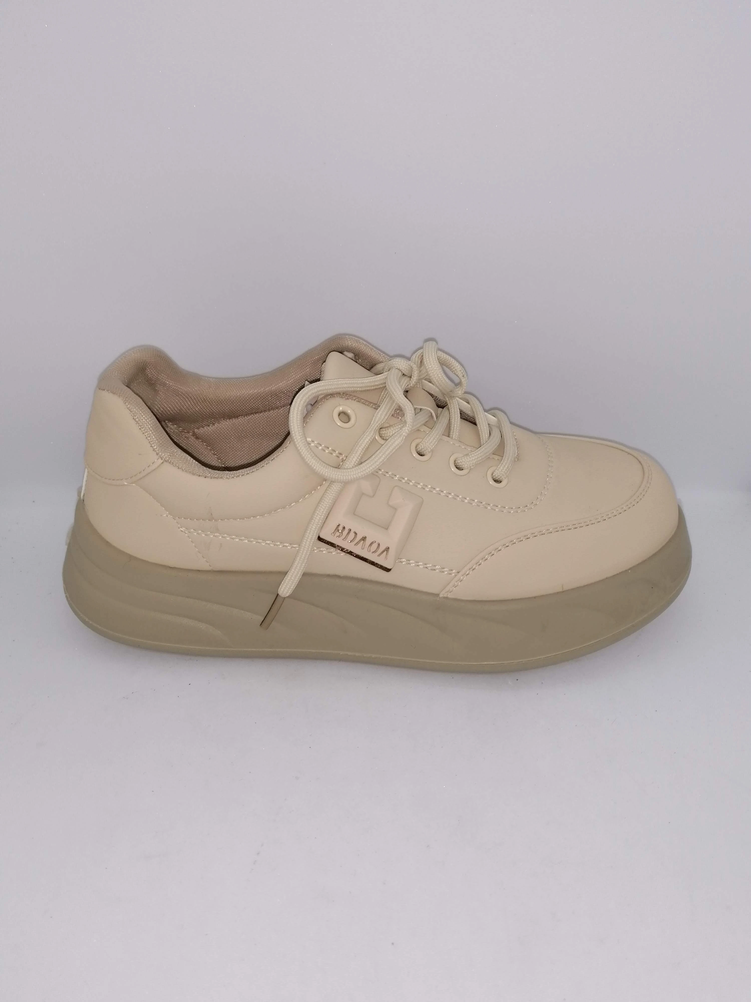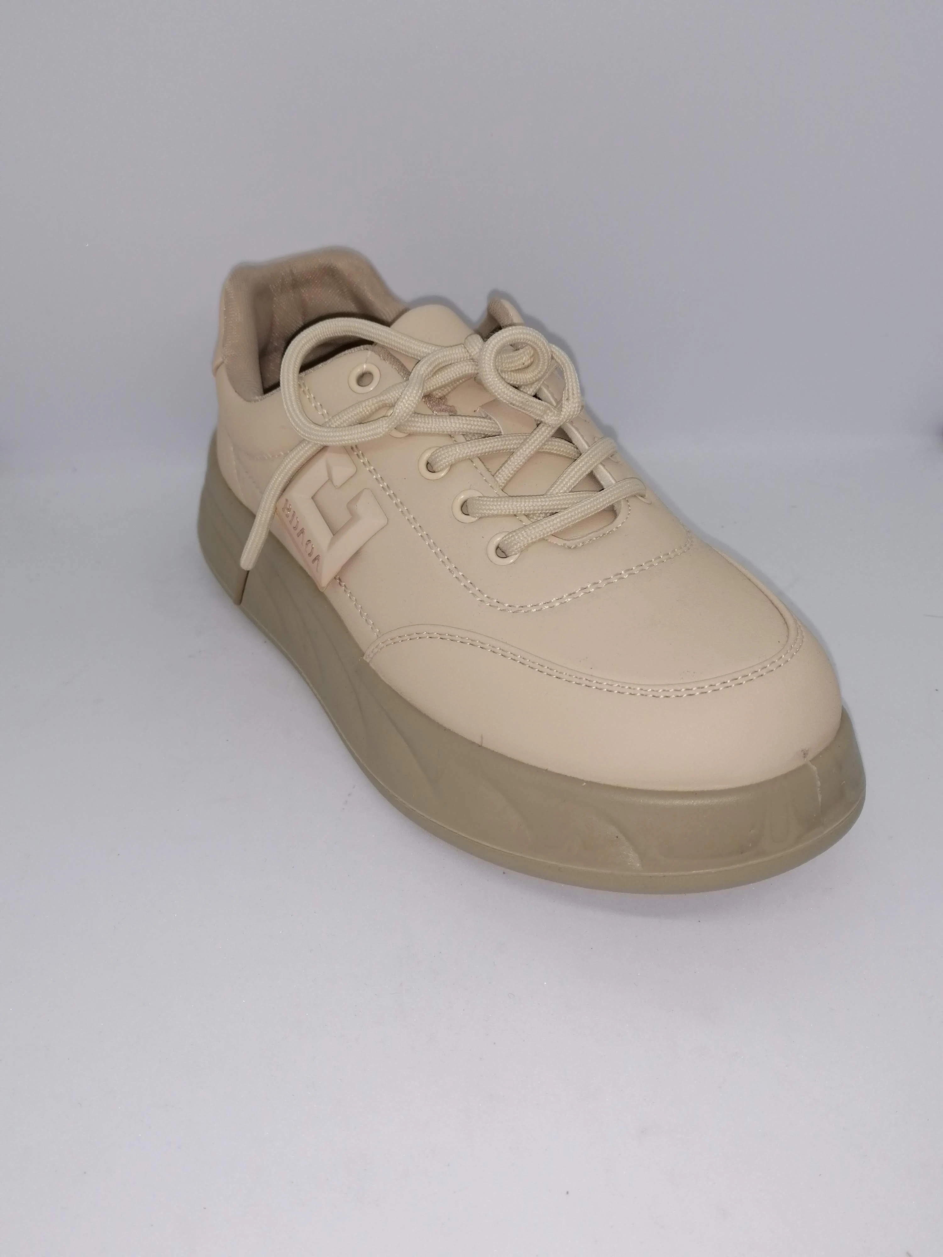 Дамски обувки в бежов цвят, изработени от висококачествена екокожа. Стилни и удобни, подходящи за всякакви поводи. Обувките са с връзки, които придават допълнителен шик и индивидуален стил. Изключително удобни за носене през целия ден. Подходящи както за ежедневието, така и за особени събития. Изпъкнете с елегантност и комфорт с тези бежови обувки от екокожа.