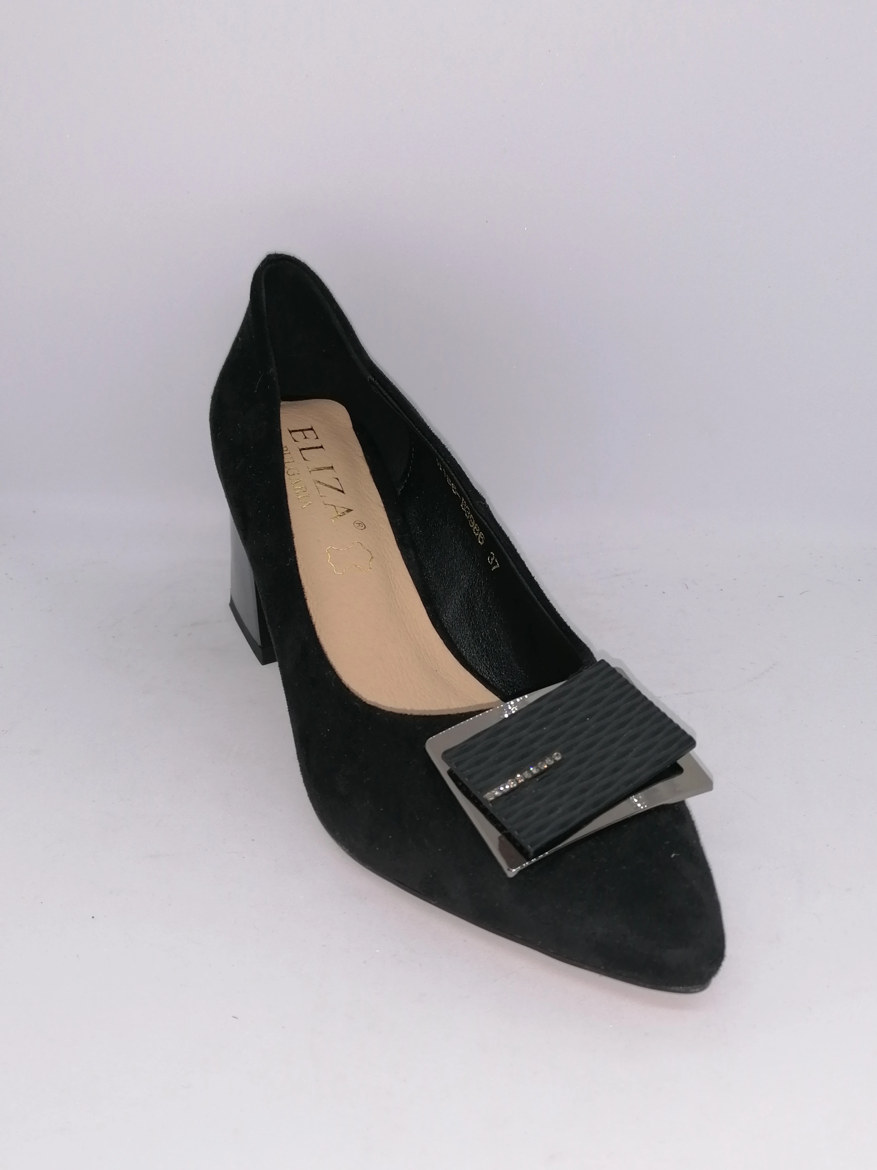 Дамски обувки Eliza са елегантни черни обувки от велур със среден ток, които се отличават със своя стил и удобство. Изработени са от висококачествени материали, които осигуряват изключителна издръжливост и комфорт при носене. Идеални са за различни поводи - от официални събития до ежедневни облекла. Тези обувки са подходящ избор за жени, които ценят качеството и стилът в детайлите. Комбинацията от черния цвят и средния ток придава на обувките елегантен вид, който лесно може да допълни вашия тоалет. Таблица с размери
