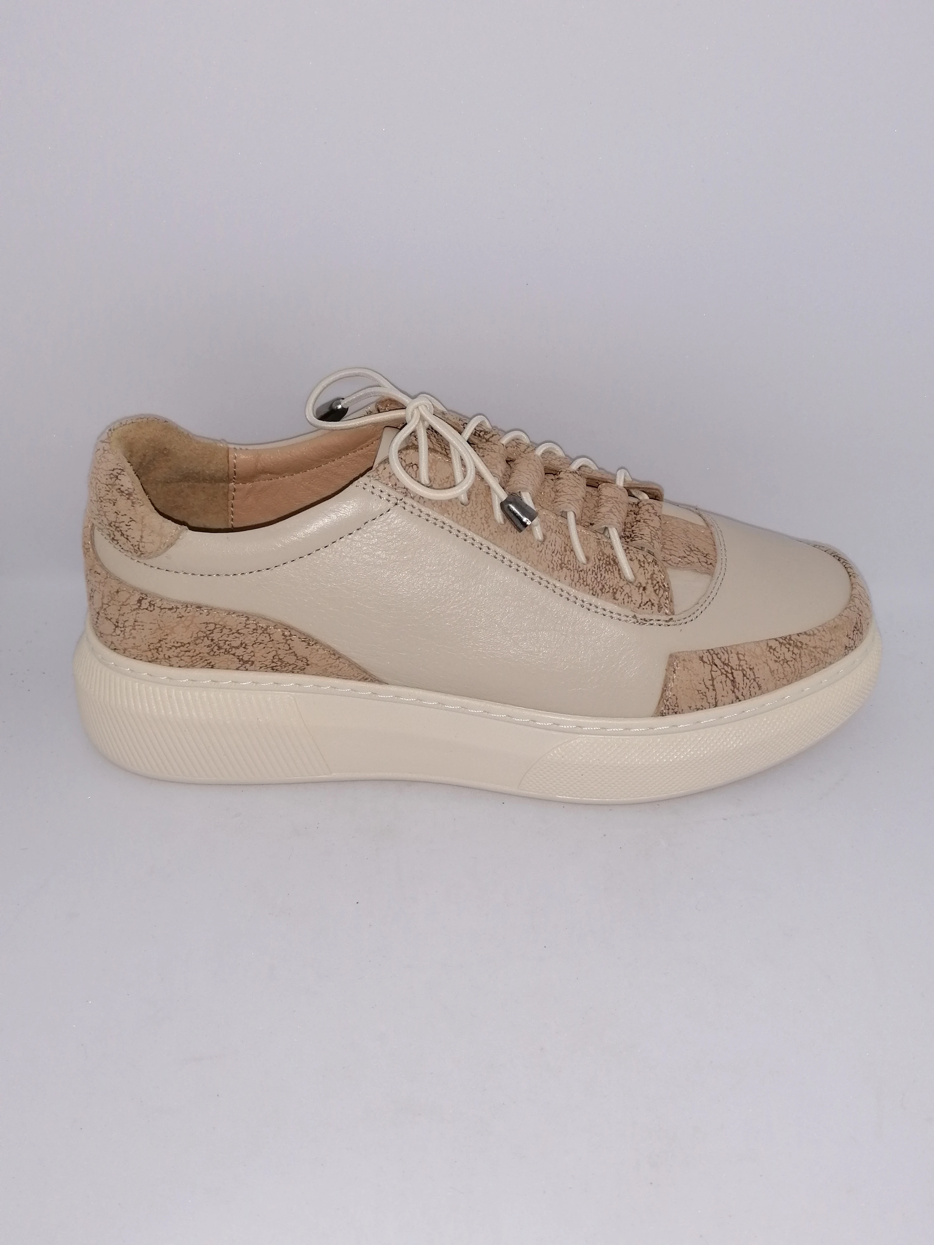 Дамски обувки Missmamma са изключително стилни и удобни обувки, изработени от висококачествена естествена кожа в светло бежов цвят с кафяви детайли. Те са идеалният избор за ежедневието, като комбинират перфектно елегантност и комфорт. Обувките имат красив дизайн със стабилна подметка, която осигурява добро сцепление с пода. Връзките на обувките позволяват да регулирате плътността и комфорта при носене. Също така, вътрешната страна на обувките е подплатена с мек материал, който придава допълнителен комфорт на стъпалата. Тези обувки са подходящи както за ежедневието, така и за по-официални събития. Съчетайки елегантен външен вид и удобство при носене, те са перфектното допълнение към вашия гардероб. Независимо дали сте на работа, на разходка или на среща с приятели, тези обувки ще ви предоставят стил и удобство през целия ден. Изберете дамските обувки Missmamma светло бежови с кафяво от естествена кожа и заложете на качеството и комфорта, които предлагат. С тях ще се чувствате не само стилно облечени, но и уверени в себе си, като излъчвате елегантност и изтънчен вкус.