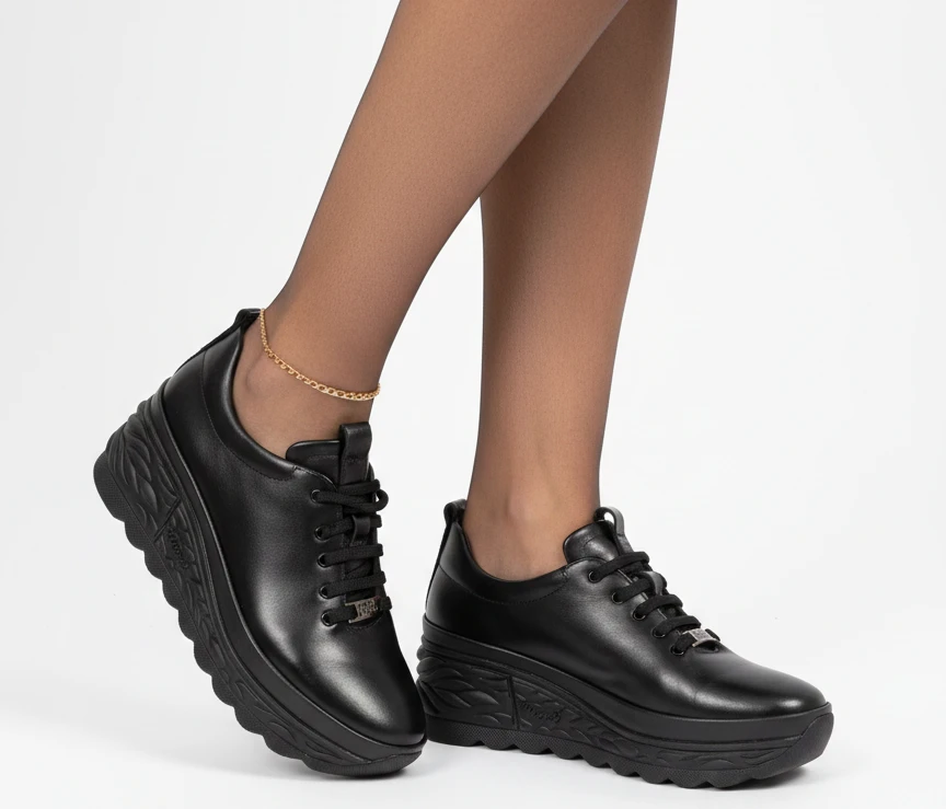 Дамските обувки Trend са стилни и удобни черни обувки от естествена кожа, подходящи за различни поводи. Изработени с внимание към детайлите и качествени материали, обувките имат връзки за перфектно прилепване към краката. Платформата им осигурява височина на тялото и осигурява удобство при носене. Идеални за ежедневно носене или за специални случаи, обувките Trend ще Ви предоставят комфорт през целия ден. Съчетайте ги с рокля, панталони или дънки и създайте модерен и елегантен външен вид. Подчертайте своя стил с тези уникални дамски обувки. Таблица с размери