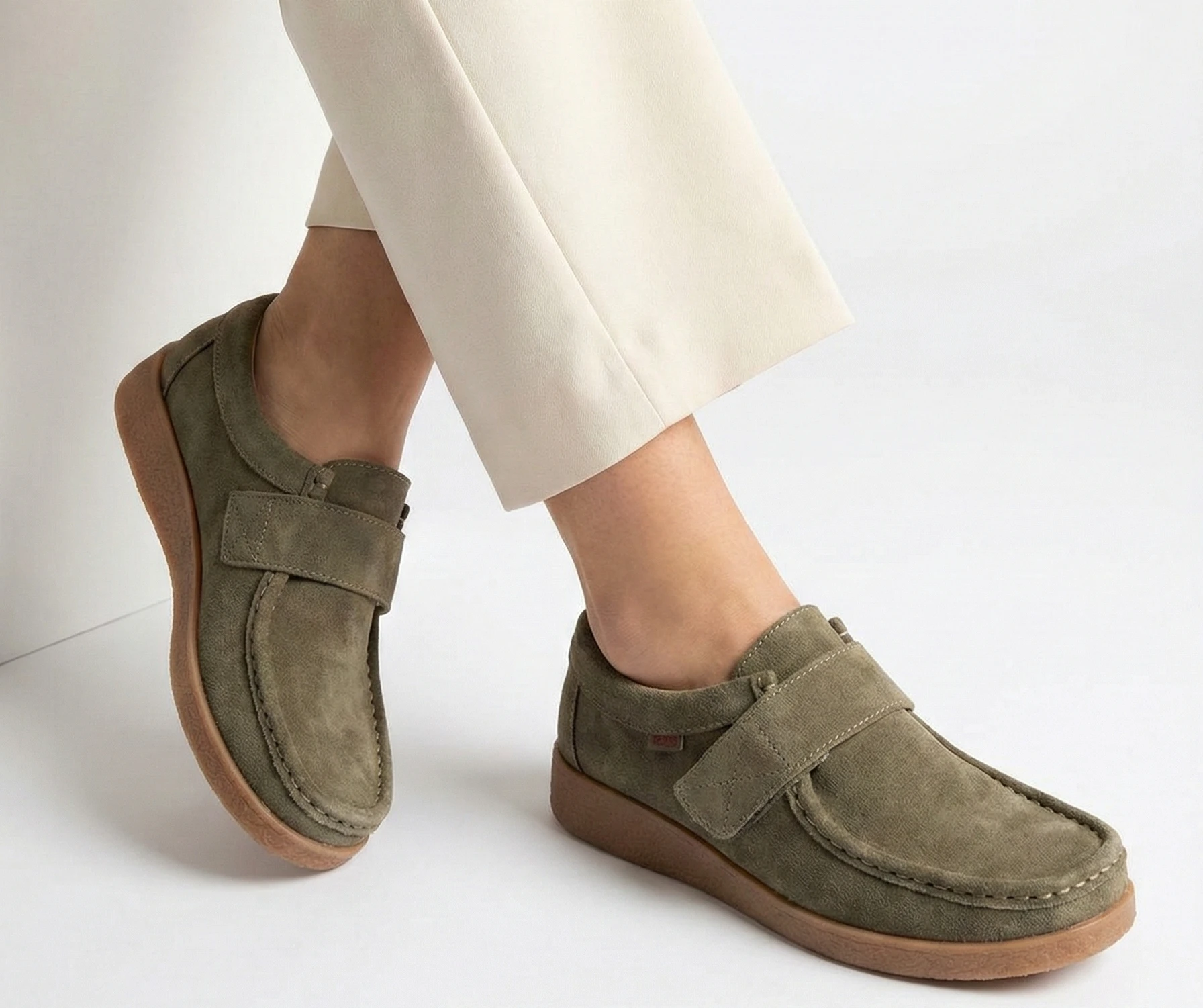Обувките са изработени от зелен естествен велур и разполагат с удобно велкро закопчаване, което ги прави идеални за ежедневно носене. Меката и устойчива подметка осигурява комфорт през целия ден, а модерният дизайн пасва перфектно както към спортно-елегантни, така и към по-формални тоалети. Тези обувки са подходящи за всякакви поводи и съчетават стил и удобство в едно. Идеални за активните хора, които ценят комбинацията от качество и изискан дизайн. Таблица с размери