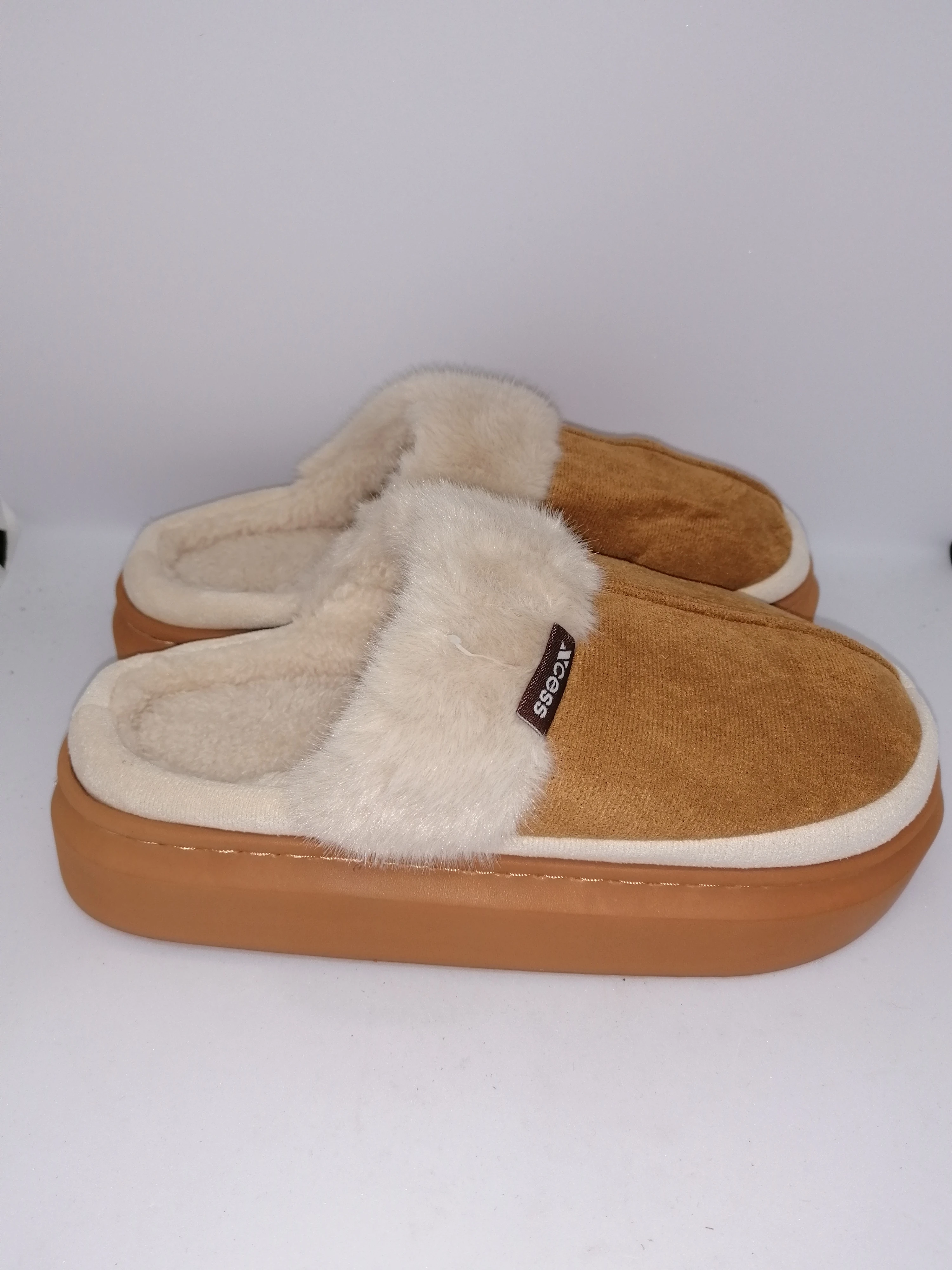 Дамските домашни чехли Xcessс са удобни и стилни чехли, направени от мек и топъл пух в кафяв цвят. Имат висока подметка, която осигурява стабилност и комфорт при носене. Идеални за студените зимни дни у дома, тези чехли са перфектния избор за жени, които ценят комбинацията от удобство и елегантност. Таблица с размери
