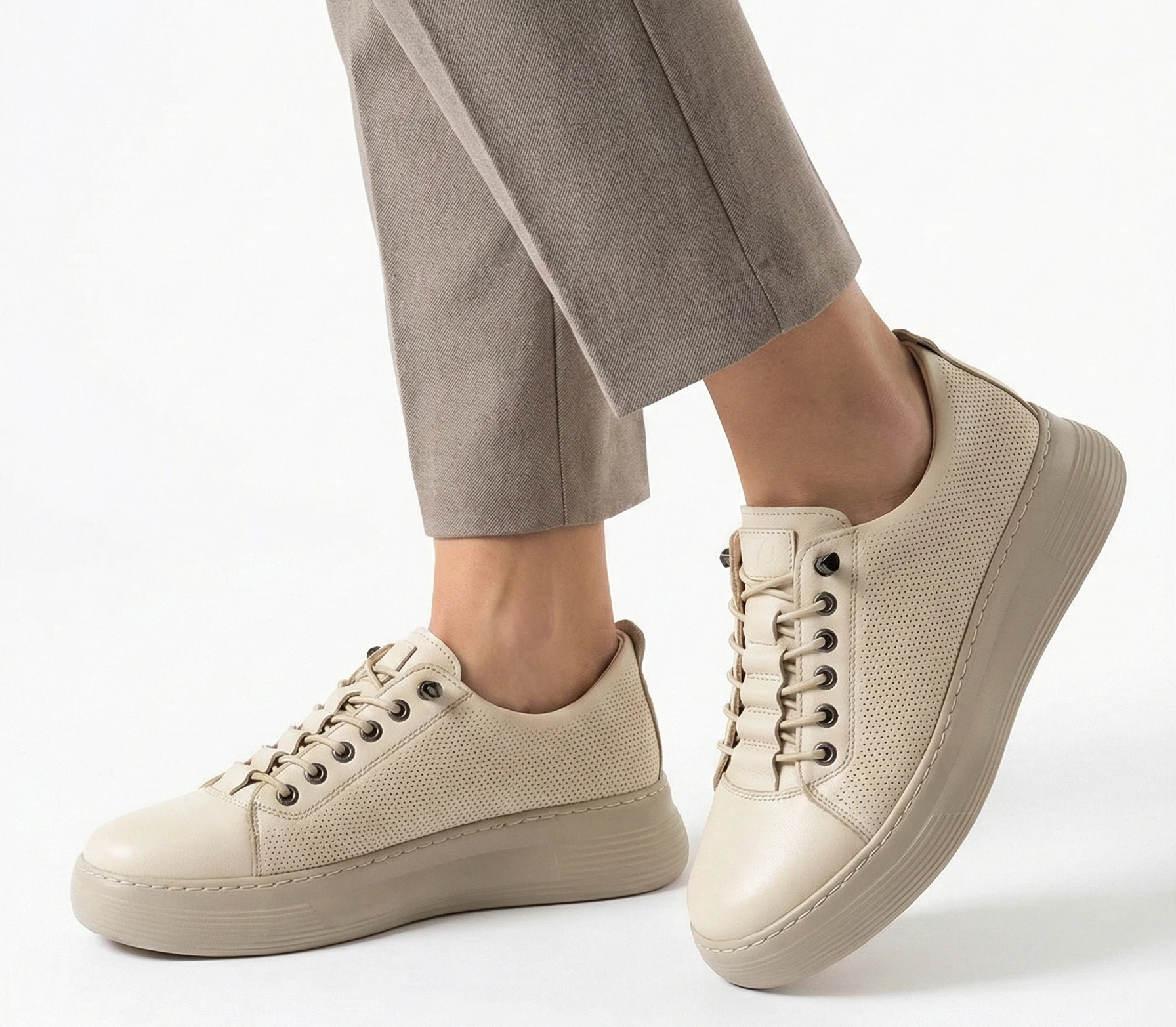Обувки Ato shoes светло бежови са стилни и удобни обувки, изработени от висококачествена естествена кожа отвън и отвътре. Те имат декоративни връзки, които придават уникален и модерен вид на обувките. Съчетават перфектно комфорт и елегантност, което ги прави идеални за различни поводи - от ежедневието до по-официални събития. Изключително издръжливи и устойчиви на износване, обувките Ato shoes ще ви служат дълго време, без да компрометират стил и комфорт. Независимо дали ги носите с дънки, панталони или рокли, те ще добавят шик и класа към вашия облик. Таблица с размери
