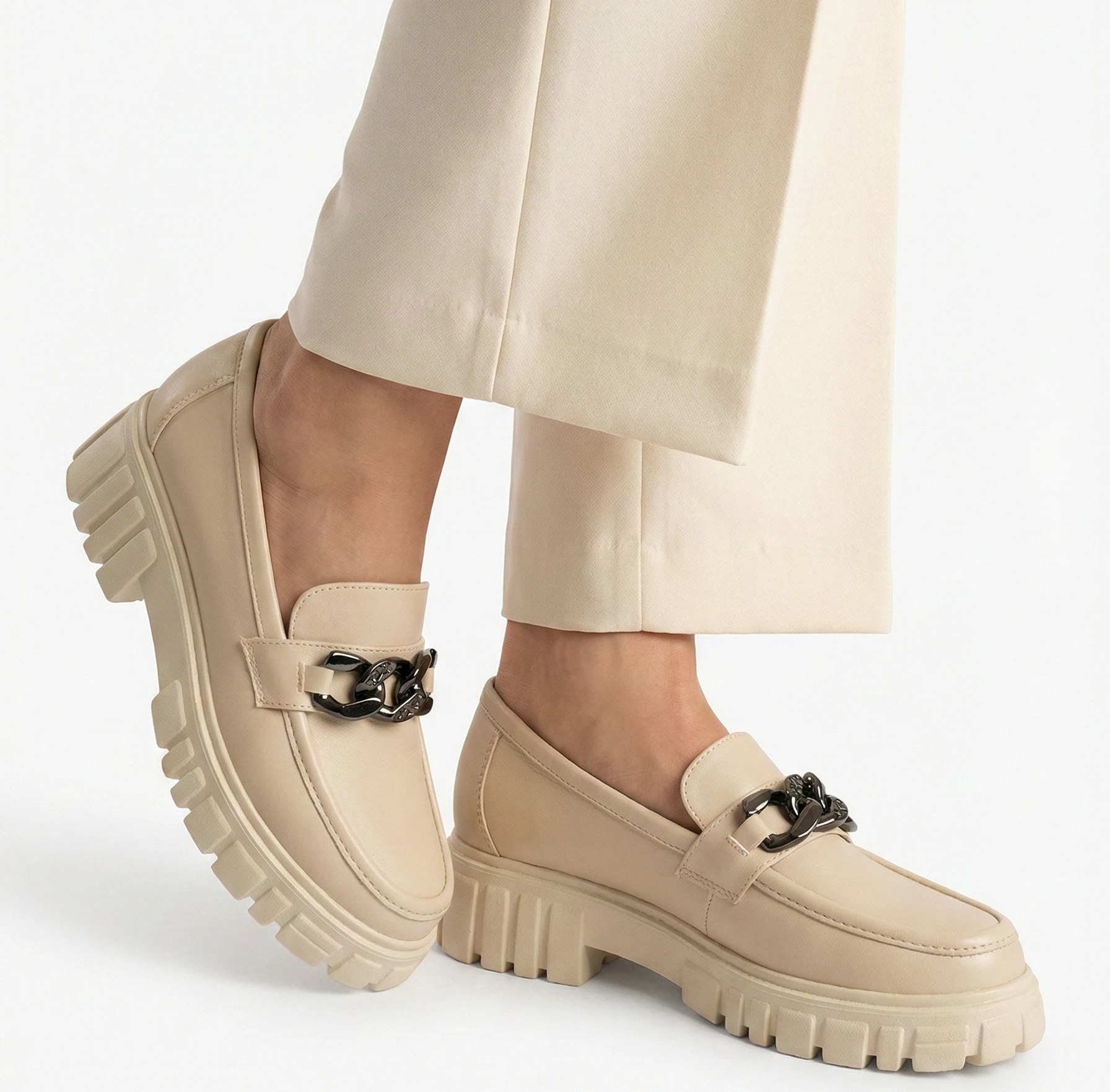 Обувките Cabin са стилни и удобни обувки, изработени от висококачествена еко кожа в светло бежов цвят. Те разполагат с модерен дизайн и са подходящи както за ежедневието, така и за по-официални поводи. Обувките имат декоративен оксидиран синджир, който придава допълнителен шик на визията. Изключително удобни за носене, обувките Cabin са идеалният избор за жени, които ценят комфорта и стилът във всяко облекло. Независимо дали се комбинират с дънки, панталони или рокли, тези обувки ще добавят елегантност и завършен вид на вашия тоалет. Таблица с размери