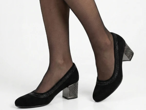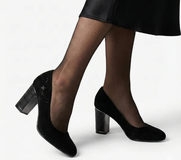 Дамски обувки Eliza internacio черен велур с тока, среден ток