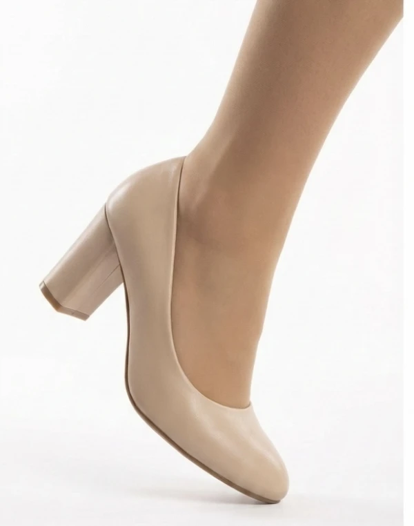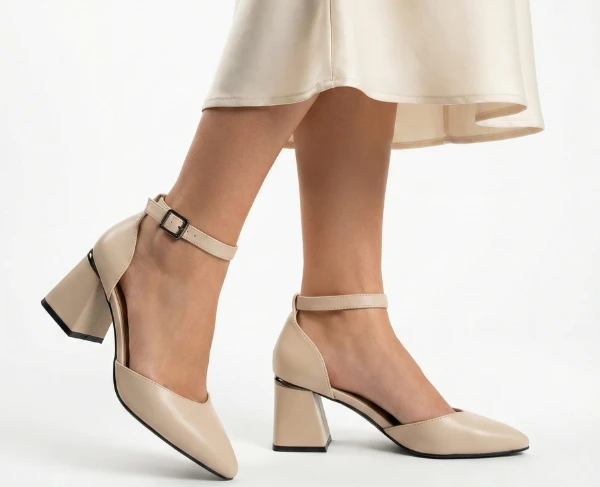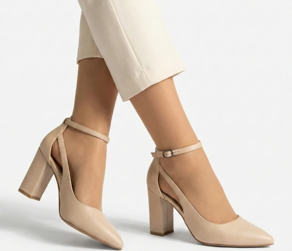Дамски обувки Doris бежови изчистена линия, от екокожа на висок ток