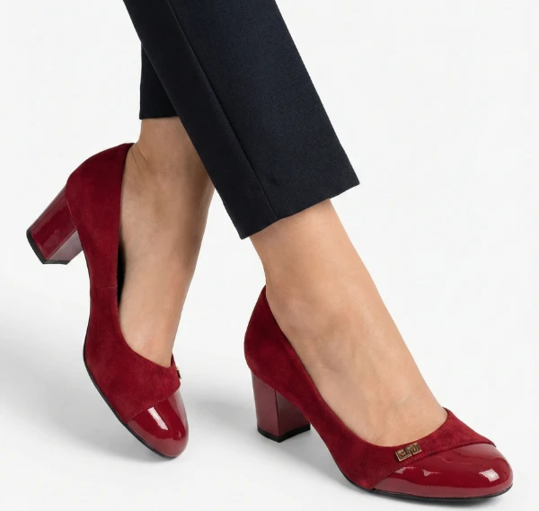 Дамски вишневи обувки на ток Xcess с токичка, велур и лак
