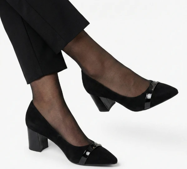 Дамски обувки Eliza черни от велур и екокожа на ток