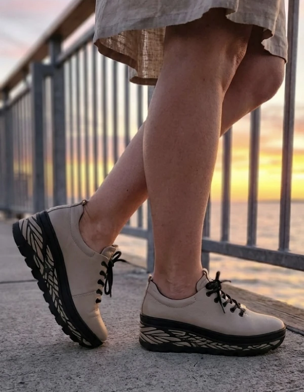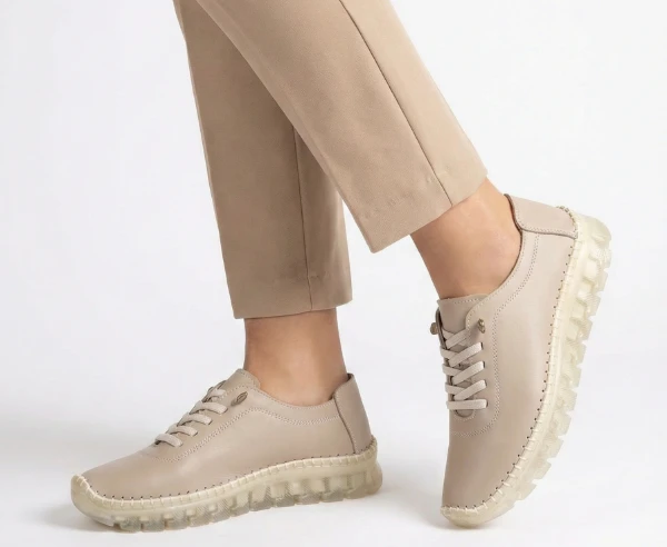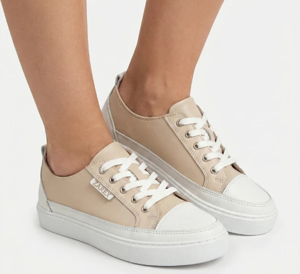 Дамски спортни обувки Ato shoes Zarex в бежово с бяло от естествена кожа с връзки