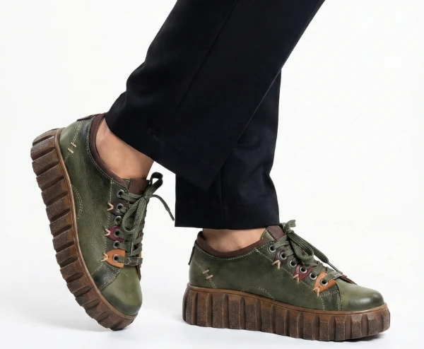 Дамски обувки Visini в зелено от естествена кожа