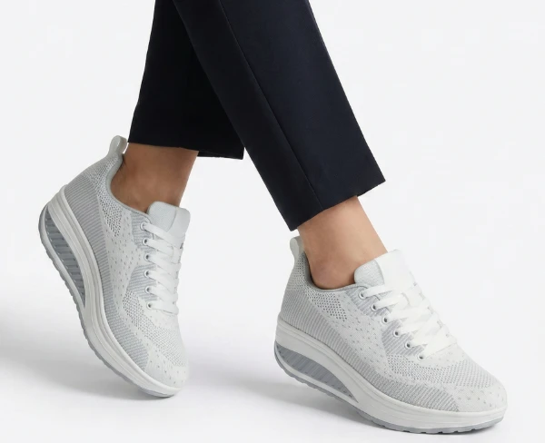 Дамски маратонки Air Star тип уокмакс с платформа в бяло със сиво