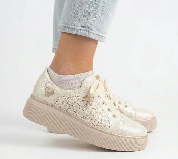 Дамски обувки Xcess бежови със златно сърце естествена кожа