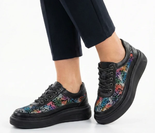 Дамски обувки Missmamma comfort ортопедични естествена кожа черно с цветя